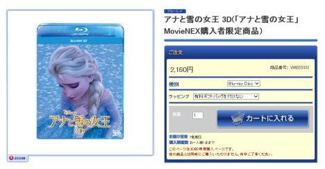 こんな感じで「アナと雪の女王」も3D版が2160円で単品購入できます。